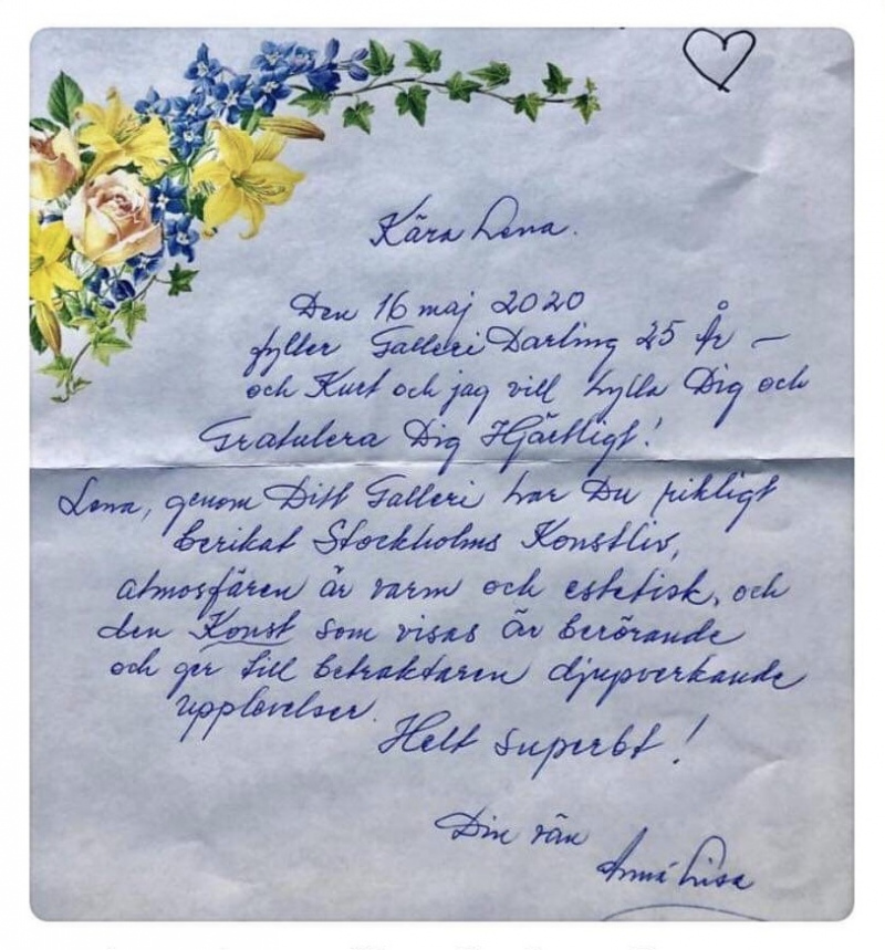 Ett brev kom till Galleri Darlings Lena - från Anna-Lisa och Kurt Eriksson